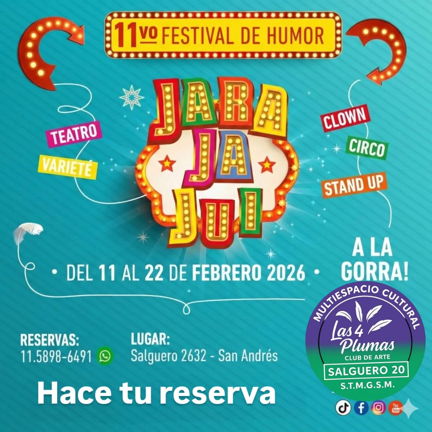 El Festival tuvo su primera edición en 2015 a partir de un taller de técnicas de humor impartido por Pablo Drigo, cuya muestra final fue presentada dentro del programa el Museo Casa Carnacini de Villa Ballester. Gracias a la excelente respuesta del público y a los deseos y el esfuerzo de los actores participantes, el evento se repitió el siguiente año para convertirse poco a poco en un festival estable organizado por Las Musas Club de Arte con el apoyo del Municipio de San Martín con una variada selección de producciones humorísticas que tratan de reflejar la potencia diversidad del teatro humorístico tanto a nivel local como nacional. Si bien en sus orígenes el festival se organizaba con exclusividad en la sala de Las Musas Club de Arte, en los últimos años se ha sumado el Centro Cultural ESPACIOS, además de ganar la calle para ofrecer espectáculos en plazas, estaciones y otros espacios públicos. Además hemos sumado a la programación espectáculos infantiles, musicales, de StandUp, de Improvisación y los talleres y seminarios intensivos dirigidos a un público más especializado que busque ahondar en los intersticios de la materia. Este año, además, contamos con una nueva sala, Las4 Plumas,un espacio mucho más grande, recientemente inaugurado que nos permite recibir en mejores condiciones a mayor cantidad de espectáculos y espectadores. Desde sus inicios el festival ha apostado a los espectáculos y artistas locales,pero buscando recibir, al mismo tiempo, las obras más destacadas del panorama nacional, porque cree en el intercambio como forma de crecimiento. Enestos cuatro años han pasado por JARA JARAJUI: CARLOS BELLOSO, CLAUDIO MARTÍNEZ BEL, EDUARDO CALVO ,EDUARDO SACHERI ,ANA ACOSTA, EDDA DÍAZ, ALE FIDALME, ROBERTO MOLINARI, TONILESTINGUI, THEIMPROS , SERGIO “CHERCA” PRIETO entre otros, además de los elencos y las propuestas de la región.